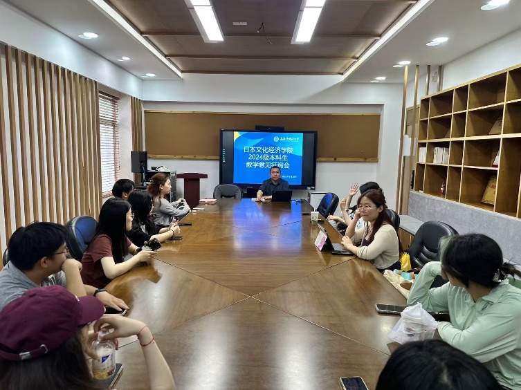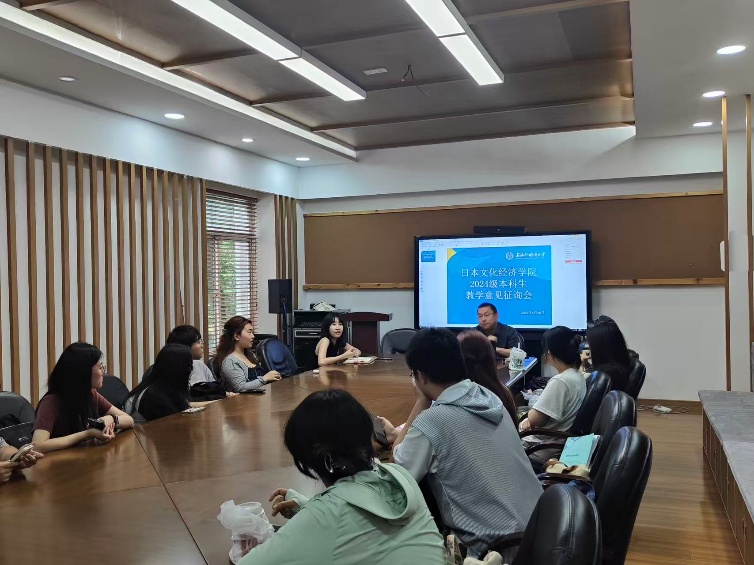 2025年5月20日,日本文化经济学院在8110会议室召开了2024级本科生教学意见征询会。分管本科教学工作的副院长伏泉老师和本科生教秘李多老师听取了24级本科生针对学院教学方面的意见和建议。