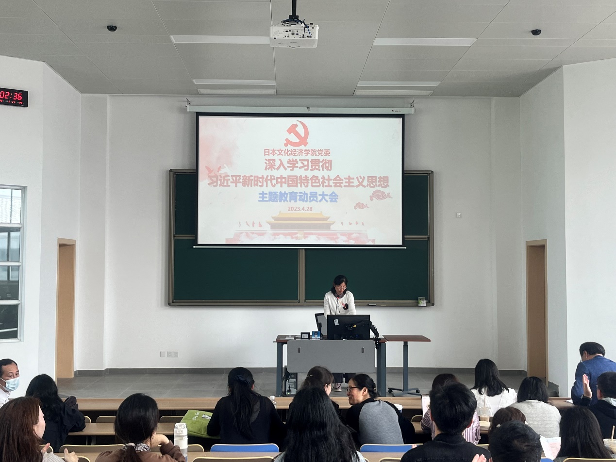 2023年4月28日下午1时,日本文化经济学院主题教育动员大会于8教楼239教室隆重举行。