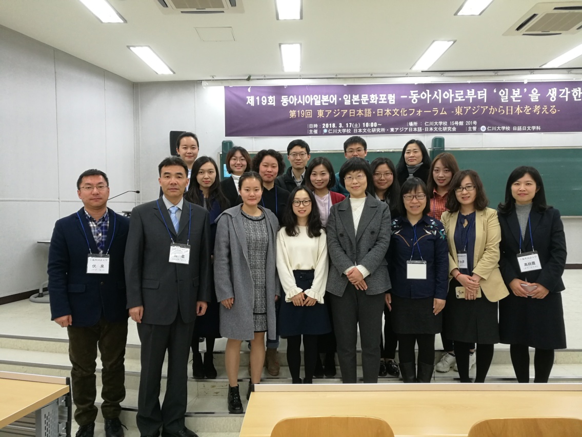 3月17-18日,日本文化经济学院6名教师和15名博士研究生由学院院长高洁教授带队赴韩国参加东亚日语・日本文化研究会和仁川大学日本文化研究所共同主办的第十九届“东亚日语・日本文化论坛”。本次论坛的主题为“立足东亚,审视日本”。