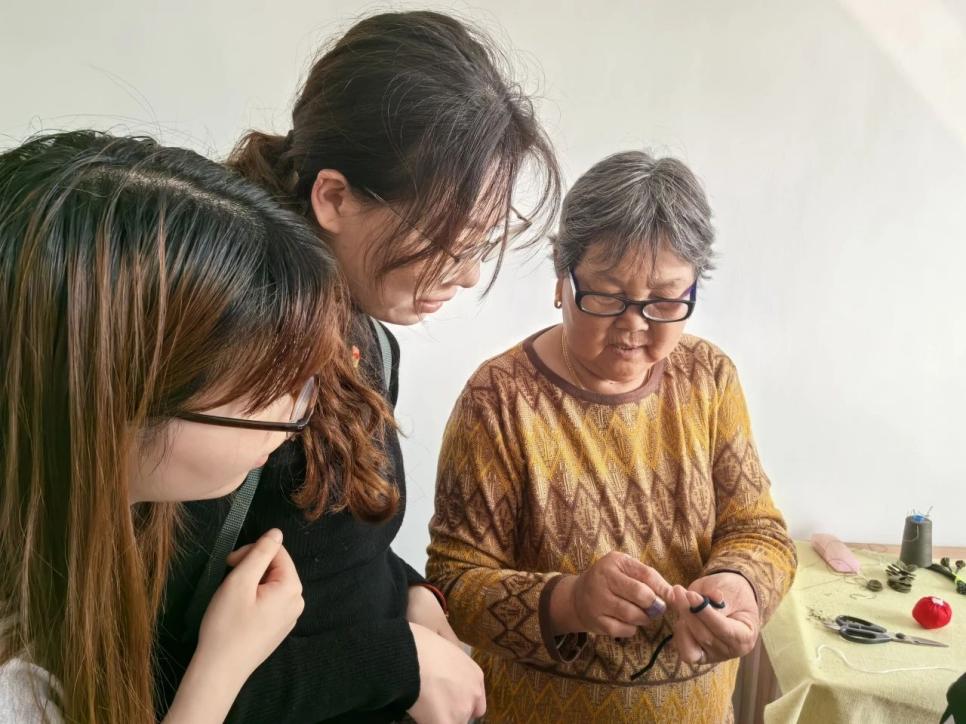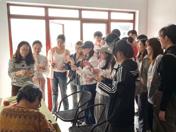 最后是学习制作非遗文化盘扣技艺。盘扣颜色绚丽多彩,外观多种多样,是中国独有的一门传统手工技艺。在袍、褂、衫、裙等服饰中,都能看到盘扣的影子。村民向同学们介绍了盘扣的发展文化,展示了众多花样的盘扣作品,并亲手指导同学们制作盘扣。此次盘扣制作学习活动让同学们体验劳动快乐、提高动手能力的同时,更加感受到了中华文化的博大精深。更重要的是,对非遗传承人的工匠精神充满了敬佩,深刻体会到了国家非物质文化遗产中所蕴含的劳动人民的智慧与创造精神。