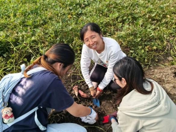 在村民的带领下,同学们手持铁锹、铲子,开始了第二项活动——挖红薯。在这项活动中,同学们不仅学到了如何正确使用工具等实用技能,更在劳动中体会到了团队合作的重要性。学生代表王佳莹说:“我们拿起小铲子,一铲铲地翻开泥土,或是为寻得红薯惊呼,或是为亲手挖出红薯喜悦。村民们热情地分享着红薯的种植技巧与收获经验,那份淳朴与热情,让人深感乡村生活的温馨与满足。”