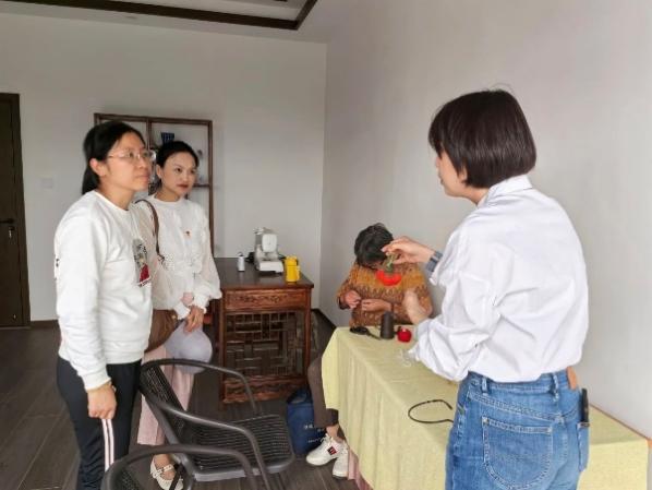 最后是学习制作非遗文化盘扣技艺。盘扣颜色绚丽多彩,外观多种多样,是中国独有的一门传统手工技艺。在袍、褂、衫、裙等服饰中,都能看到盘扣的影子。村民向同学们介绍了盘扣的发展文化,展示了众多花样的盘扣作品,并亲手指导同学们制作盘扣。此次盘扣制作学习活动让同学们体验劳动快乐、提高动手能力的同时,更加感受到了中华文化的博大精深。更重要的是,对非遗传承人的工匠精神充满了敬佩,深刻体会到了国家非物质文化遗产中所蕴含的劳动人民的智慧与创造精神