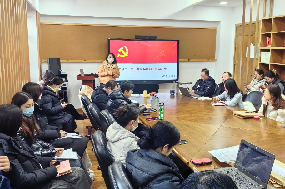 2025年1月13日,日本文化经济学院教工党支部召开党的二十届三中全会精神主题学习会。此次会议旨在深入学习贯彻党的二十届三中全会精神,通过开展党风廉政主题教育和师德师风警示教育,进一步加强师德师风建设,更好地培养高素质教师队伍。会议由教工党支部书记林彬主持,全体党员教师参加会议。作为教职工理论学习的一部分,学院其他教师列席会议。