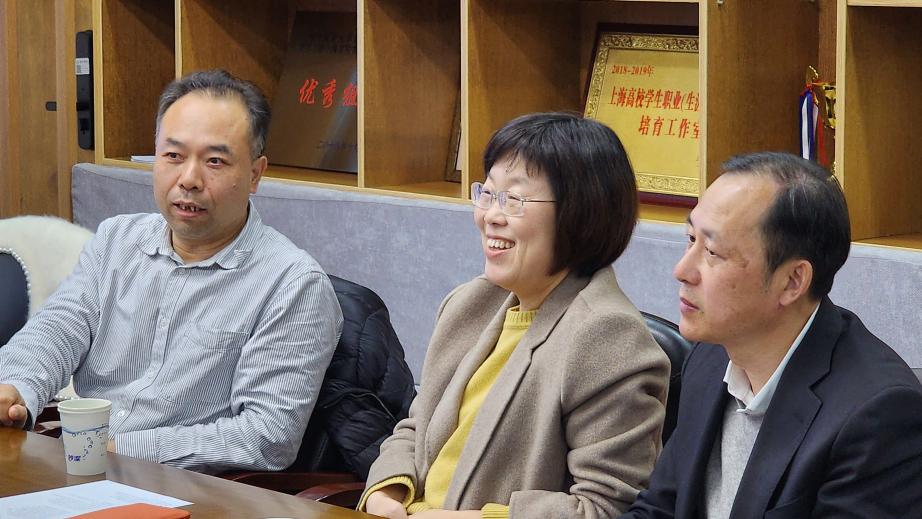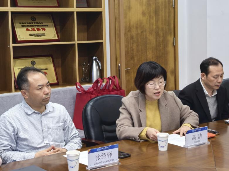 华东政法大学外语学院领导在上外日院老师的陪同下,首先对学院进行了参观。我院老师详细介绍了教学楼内的教学设施、办公场所等,双方就教师发展、学生培养等议题进行了交流。