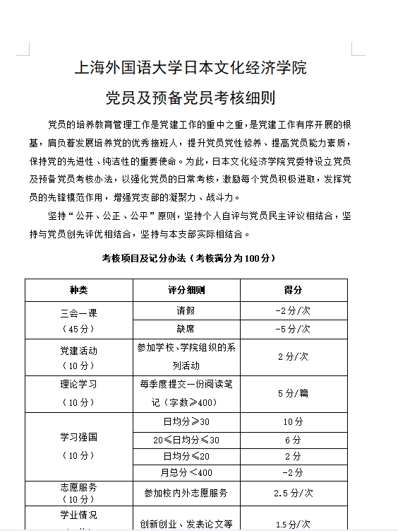 2024年,日本文化经济学院党委进一步加强党建管理制度规范化、标准化。上半年持续修订并完善《日院党建中心管理办法》等一系列制度章程,将日院各支部紧紧凝聚在院党委领导下的党建中心周围,构建起“一个中心,促全面发展”的党建管理特色,调动各方面积极性,提高支部治理效能。