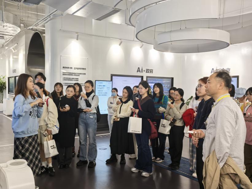 在讲解人的带领下,同学们详细了解了科大讯飞企业的发展历程及其科研成果,知晓其为国内第一家大学生自主创业且上市的企业。通过观看AI解说员用多国语言对企业进行介绍的视频,同学们对于科大讯飞人工智能发展的水平有了初步的认识与体会。